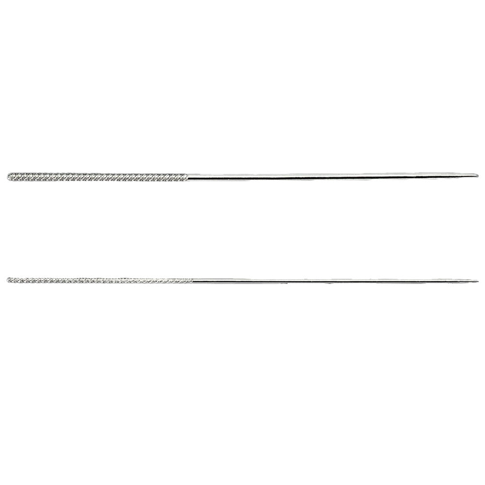Clover Snag Repair Needles effortlessly repair snags in knitted and woven garments. There are two needle sizes included—the thicker size for loosely woven or knit fabrics, and the finer size is perfect for loosely woven or more delicate fabrics. Each needle features a fine ballpoint that allows for manipulating fabric without worrying about splitting fibers. Made of steel.