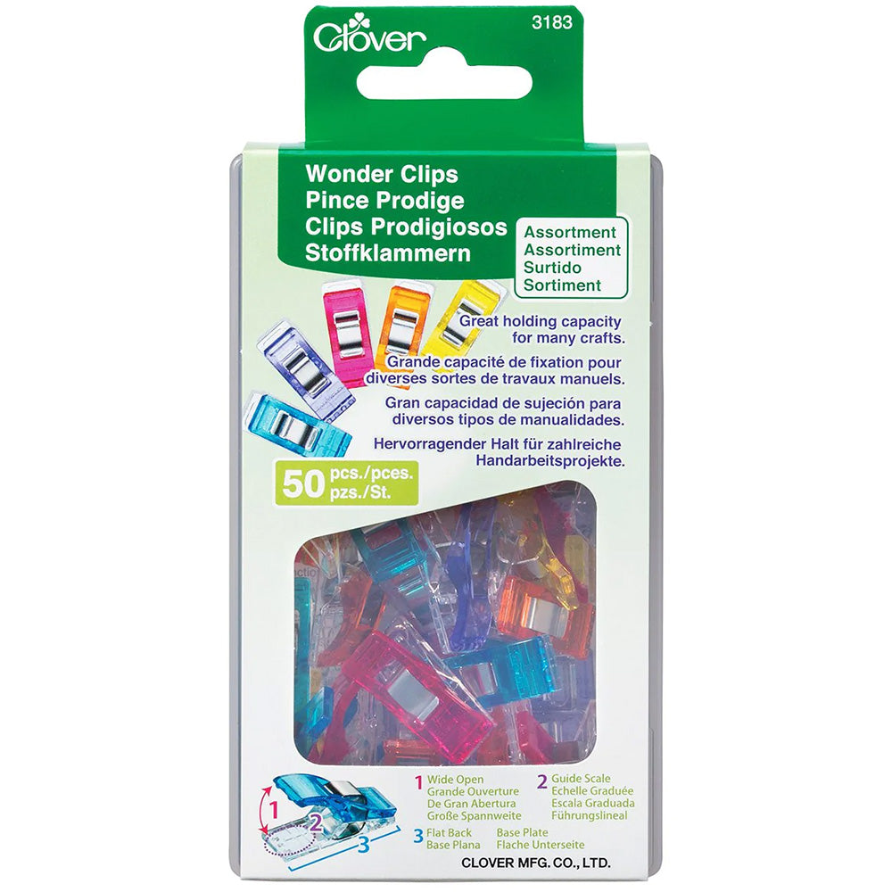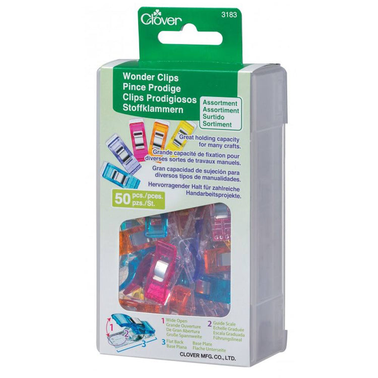Clover's new Wonder Clips in assorted colors are a fun, new alternative to pins! These little fabric clips hold your fabric layers together while you sew, instead of using pins that are sharp and can pin your fingers. Since they hold a wider area, you can use them with thick layers or multiple layers.