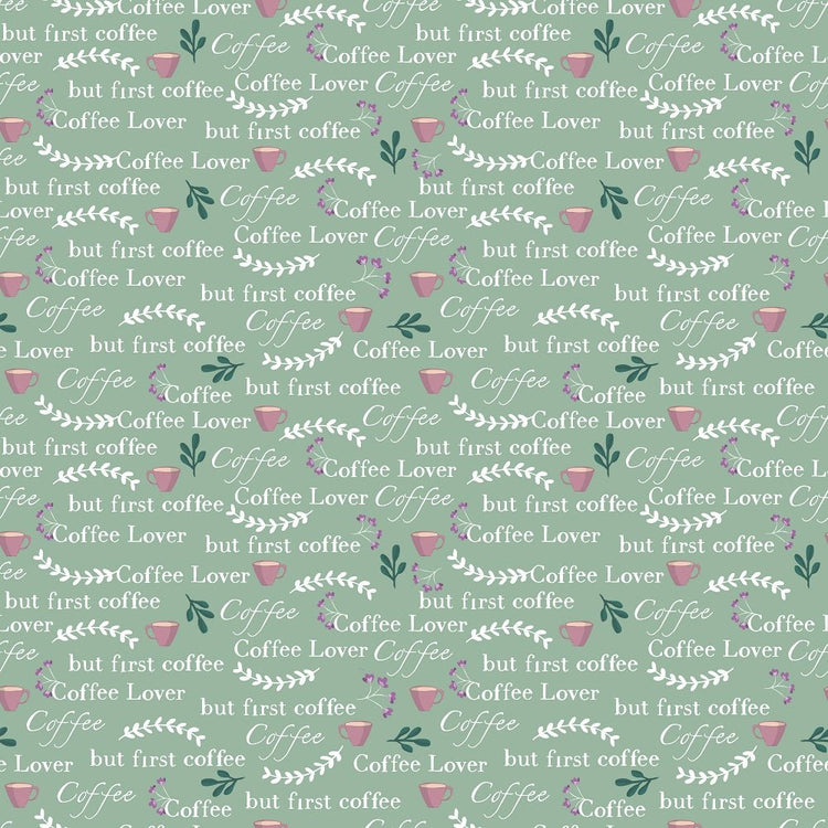 The Green Coffee Lover Font Fabric is part of the Coffee Lover Fabric Collection printed by Sew Creative Fabrics. Digitally Printed on 100% cotton.