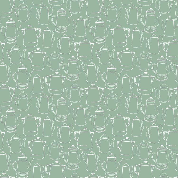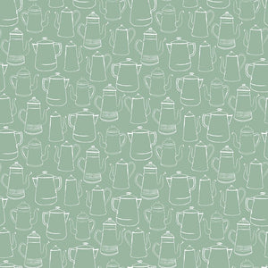 Coffee Lover Sketched Pots Fabric - Green
