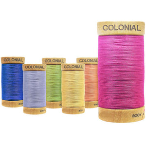 Organic thread offers the same vibrant colors and feel you expect from manufactured threads while remaining safer and healthier. Colonial's Organic 50wt Cotton Thread uses no toxic chemicals and instead relies on natural methods. These 300-yard spools are great for machine quilting or hand sewing. They offer vibrant colors with a lustrous sheen. Colonial's 100% Organic Cotton Thread is available in over 30 fun shades.