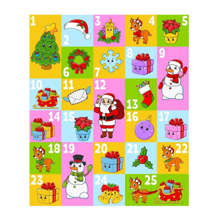 Colorful Cartoon Christmas Advent Calendar Fabric Panel