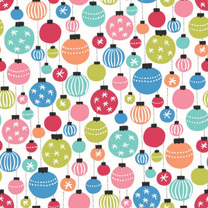 The Colorful Hanging Baubles Fabric is part of the Christmas Fabric Collection printed by Sew Creative Fabrics. Digitally Printed on 100% cotton.