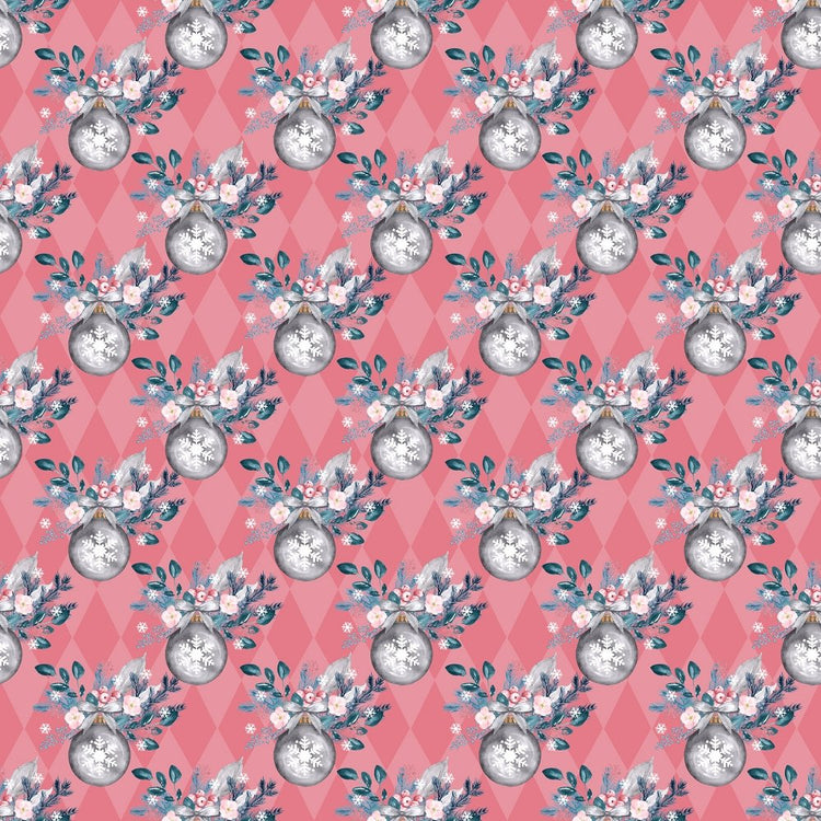 The Pink Colorful Ornaments on Diamond Fabric is part of the Colorful Christmas Fabric Collection printed by Sew Creative Fabrics. Digitally Printed on 100% cotton and measures 43-44" wide.