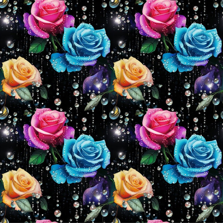 Colorful Roses & Water Droplets Fabric