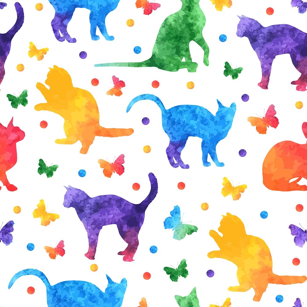 Colorful Watercolor Cats & Butterflies Fabric Details