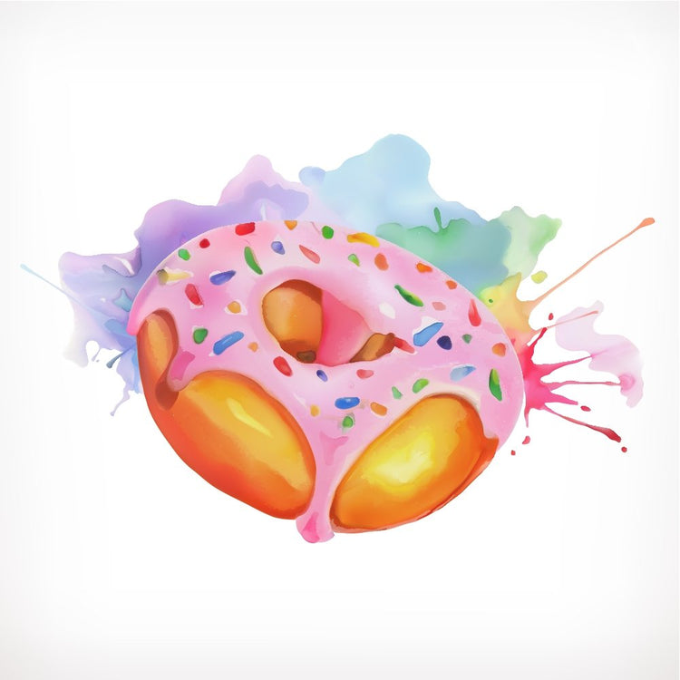 The Colorful Watercolor Splash Donut Fabric Panel is part of the Colorful Watercolor Splash Fabric Collection printed by Sewing Parts Online. Digitally Printed on 100% cotton. This panel is available in 6 different sizes: