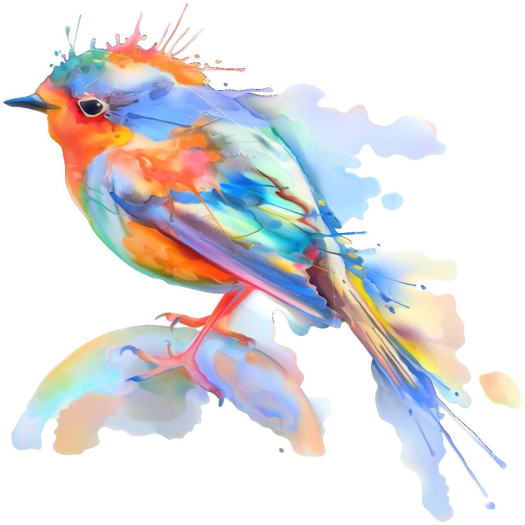 Colorful Watercolor Splash Little Bird Fabric Panel