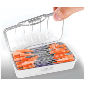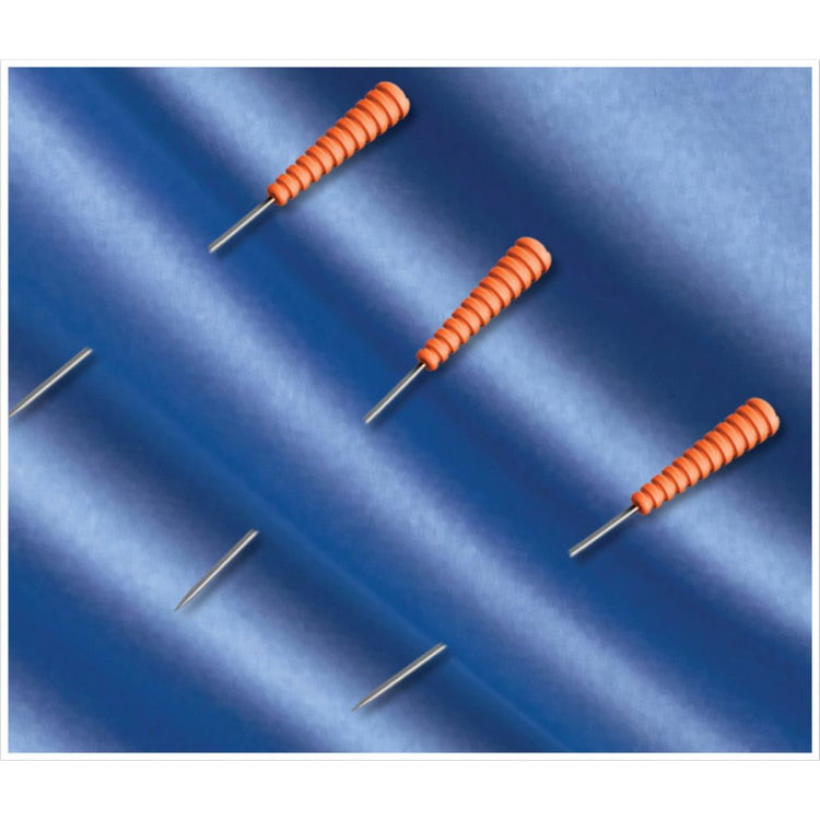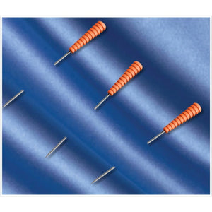 Taylor Seville's Fine Silk Magic Pins feature comfort grip heads that are heat resistant. Easily insert these 1-7/16-inch silk pins into your delicate fabrics and iron directly on top of them without damaging them. Available in either a 50 or 100-pack. These orange pins come in a stylish and functional case!