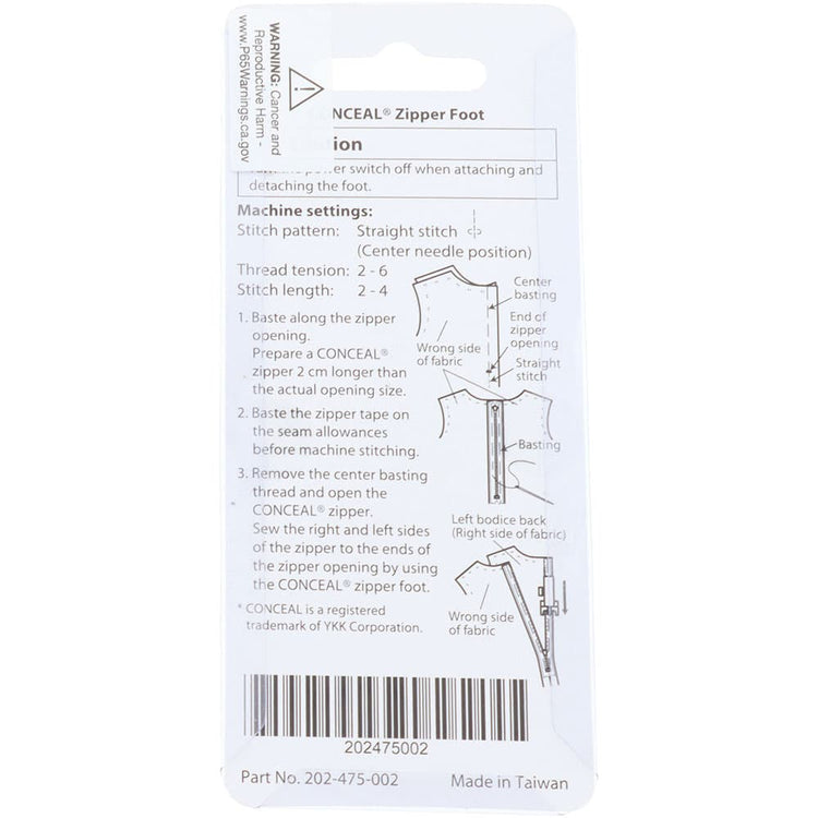 Invisible zippers are suitable for all fabrics, from fine silk jerseys to wool and tweeds. The key is to get the needle as close to the fastener as possible, which this foot accomplishes by slightly unrolling the zipper just before the needle. Once fitted, a well-sewn invisible zipper will merely look like part of the seam.