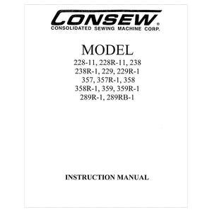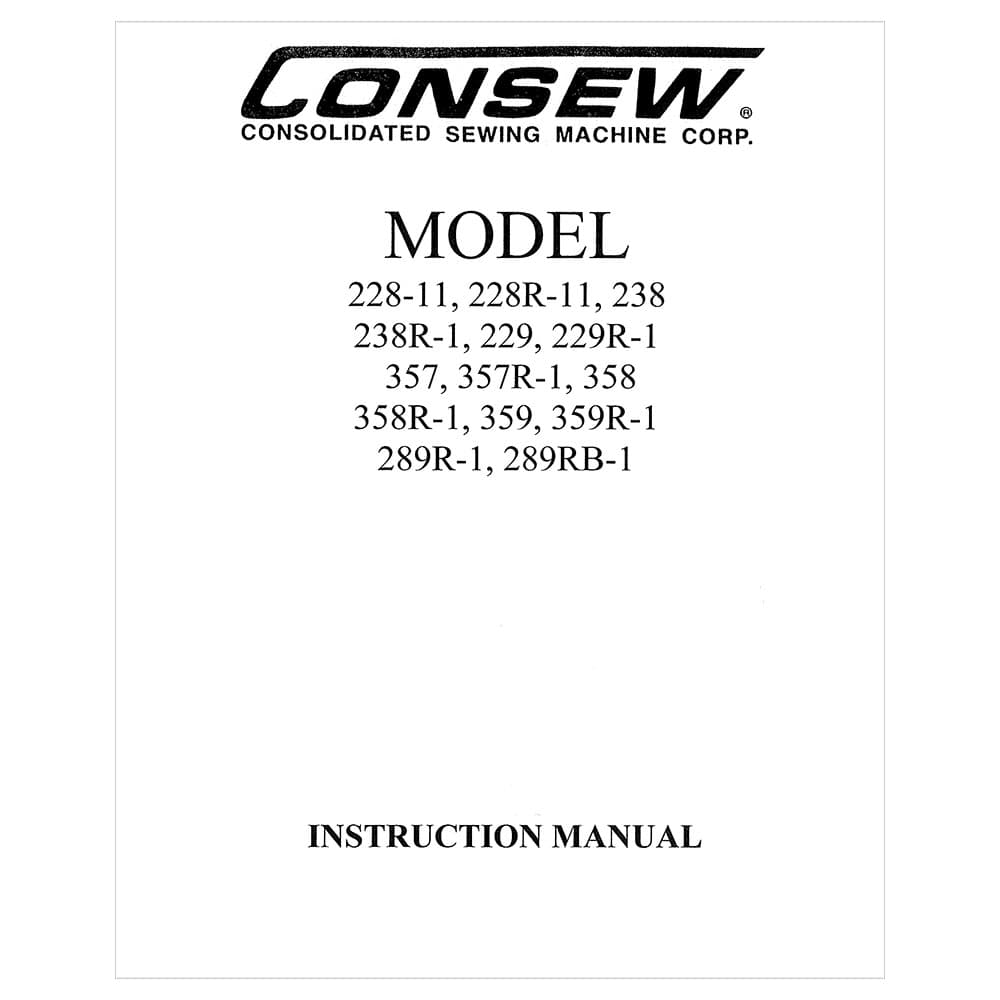 Consew 228-11 Sewing Machine Instruction Manual (Model 228-11/228R-11/238/238R-1/229/229R-1/357/357R-1/358/358R-1/359/359R-1/289R-1/289RB-1) - 18 Pages. Lost your sewing machine's manual? We've got you covered! This instruction manual is the ultimate guide to unlock the full potential of your Consew 228-11. No more confusion or frustration—just clear, concise instructions right at your fingertips. What's inside? Everything you need to know from setting up to mastering your sewing machine and all its features.