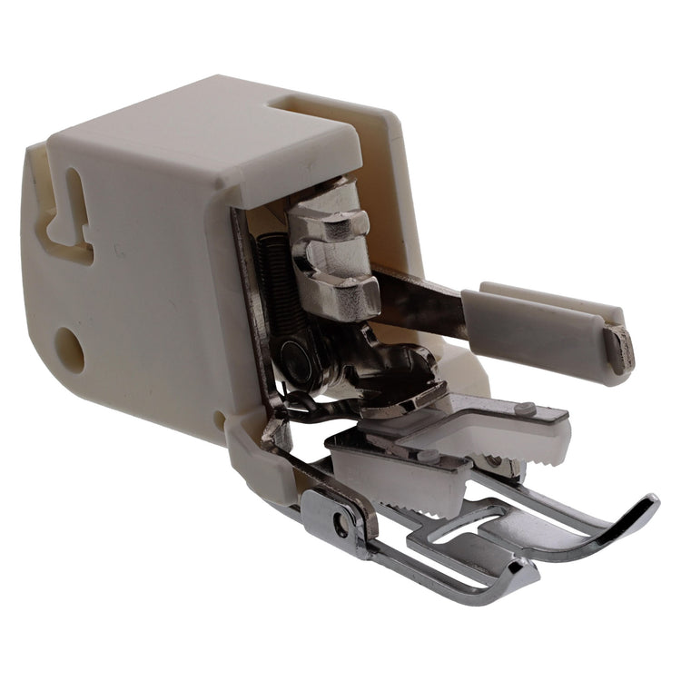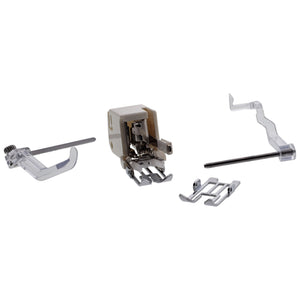 The Convertible Even Feed foot set is designed specifically for quilters. It includes everything you will need to do some gorgeous quilting, including an even feed foot with a closed toe, an open-toe foot for extra visibility, a ditch quilting guide, and an adjustable quilting guide.