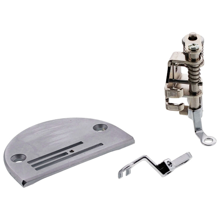 The Convertible Free Motion Quilting Foot set is a set that includes three different feet and one holder. These feet are attached to the holder with a screw for maximum sturdiness and safety. This set contains one clear-view foot for uneven surfaces, one open-toe foot for extra visibility, and one closed-toe foot for general use.