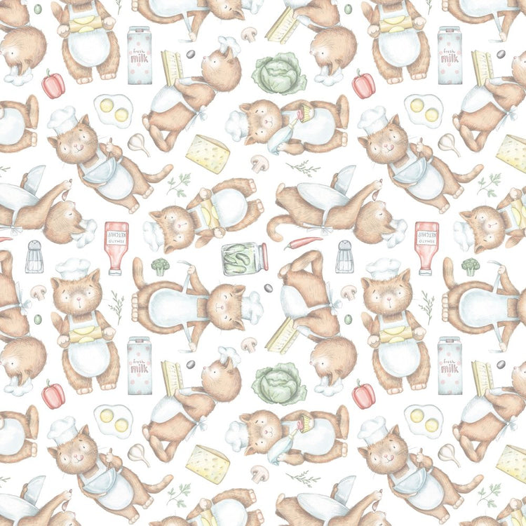 The Cooking Vegetables In The Kitchen Fabric is part of the Kitten In The Kitchen Fabric Collection printed by Sewing Parts Online. Digitally Printed on 100% cotton.