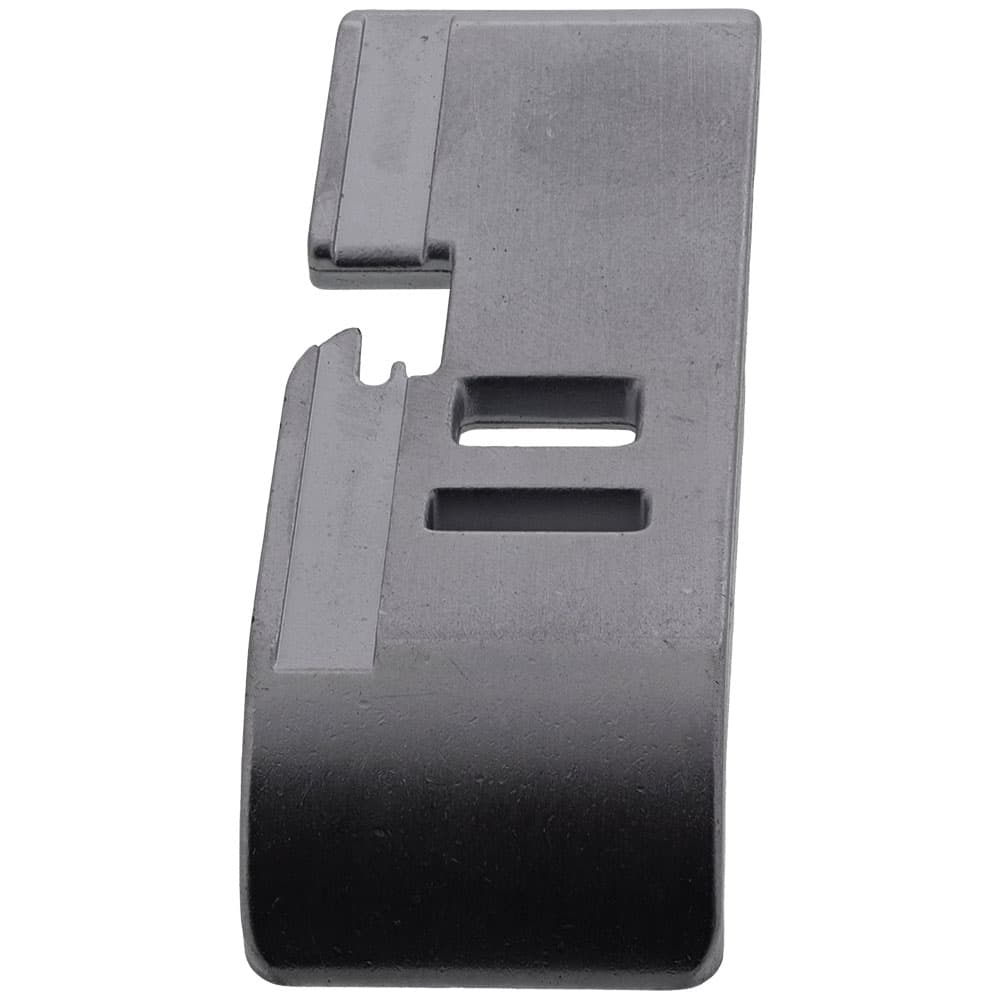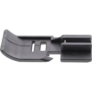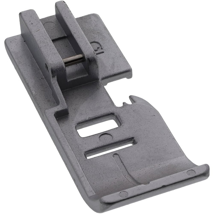 The Q foot is great for serging over various tapes and cords with decorative threads to create your own decorative trim. Use heavy decorative thread suitable for overlock machines in the upper looper.