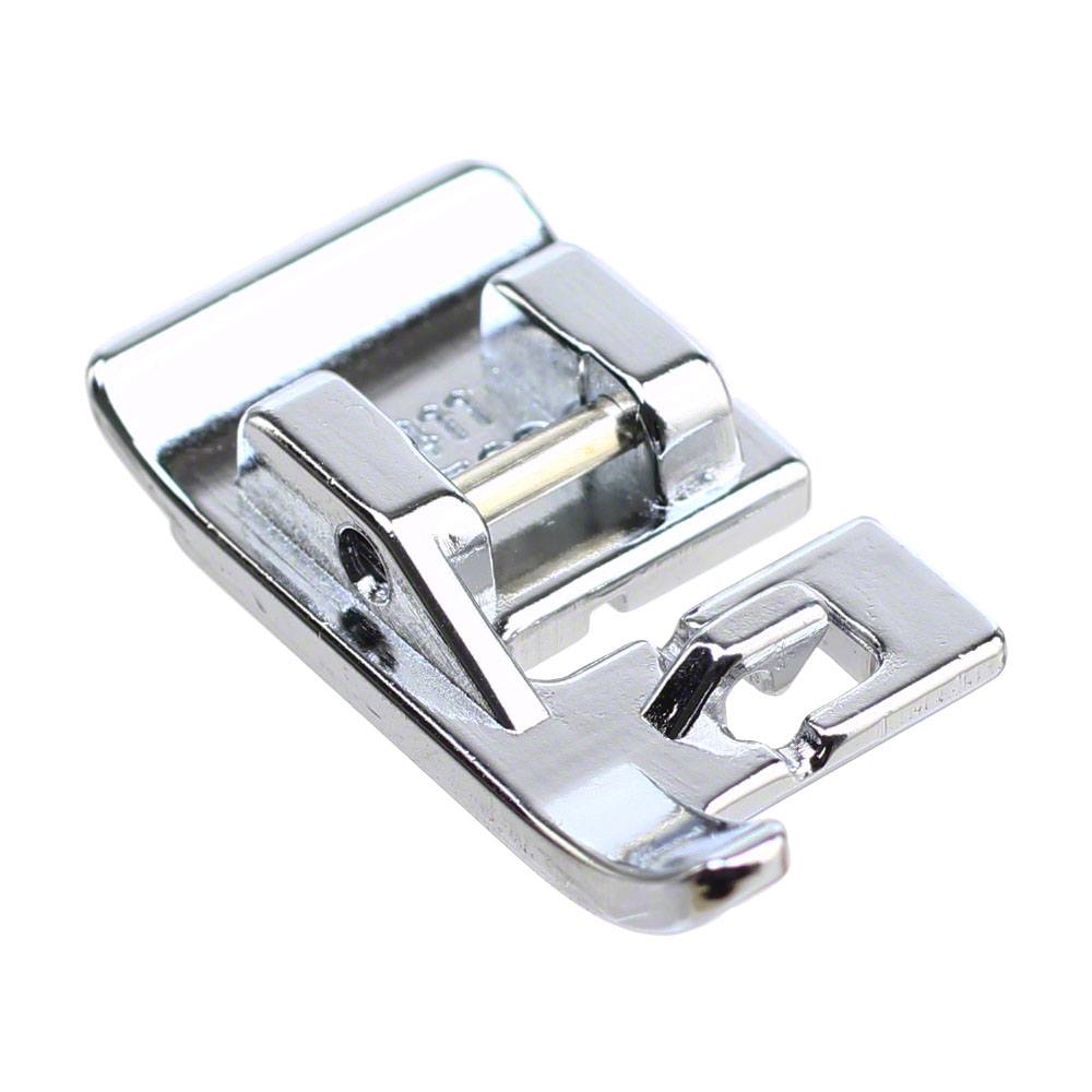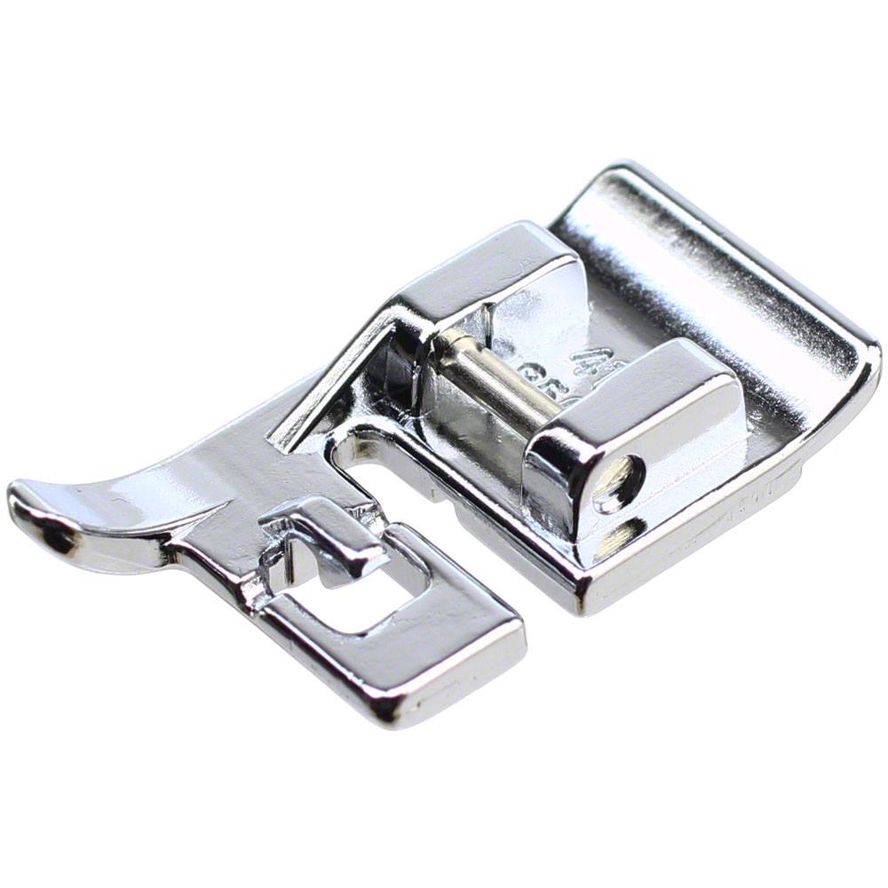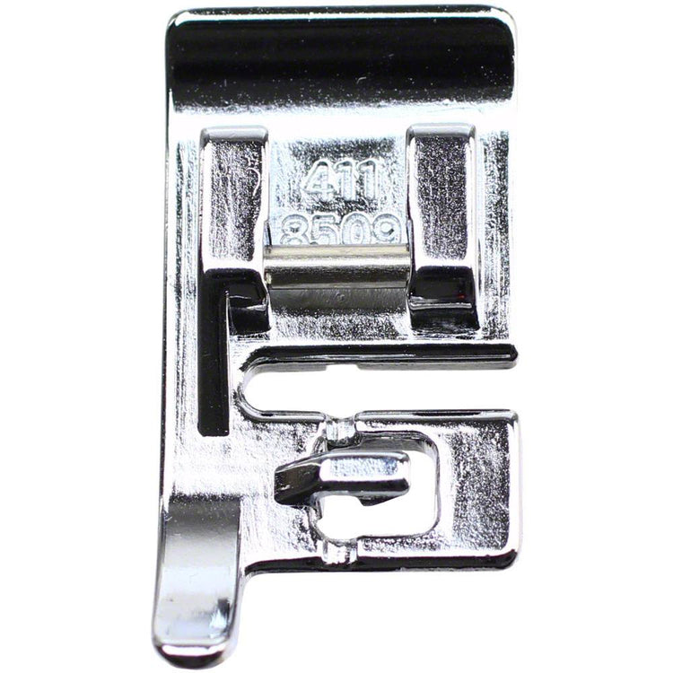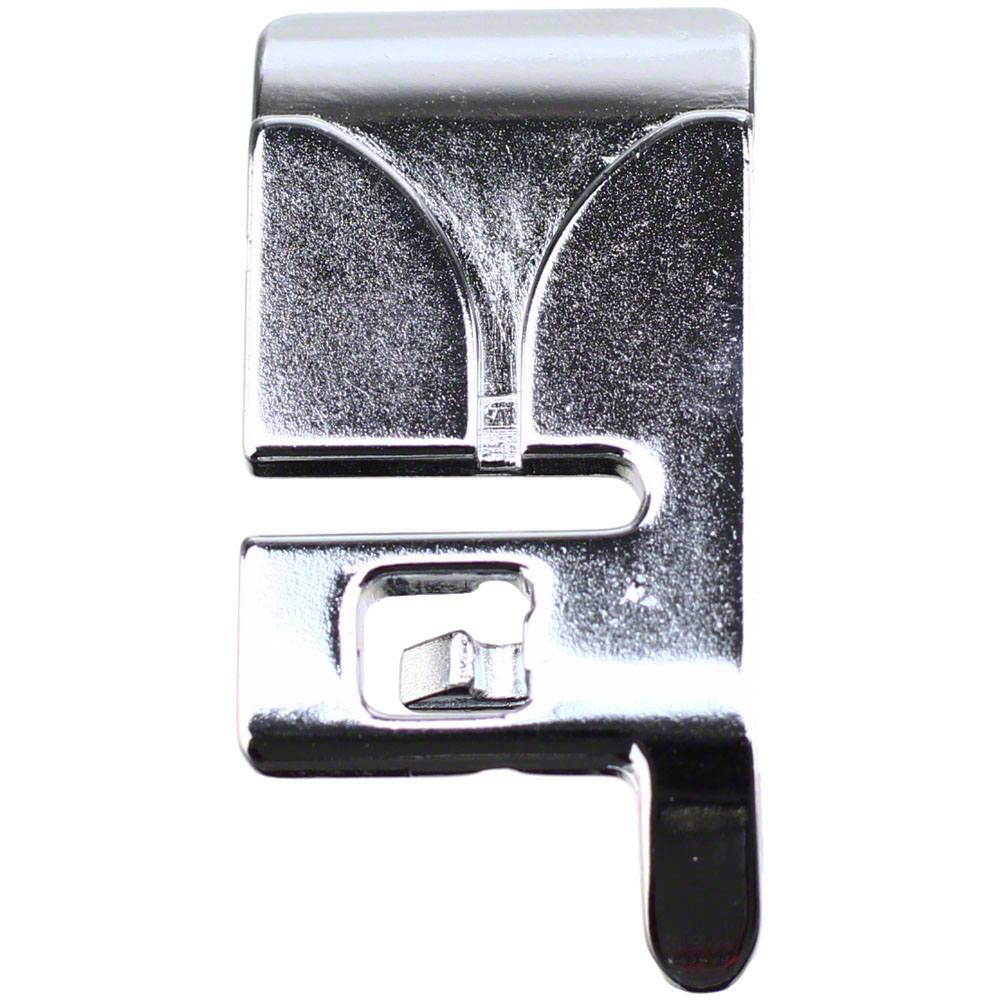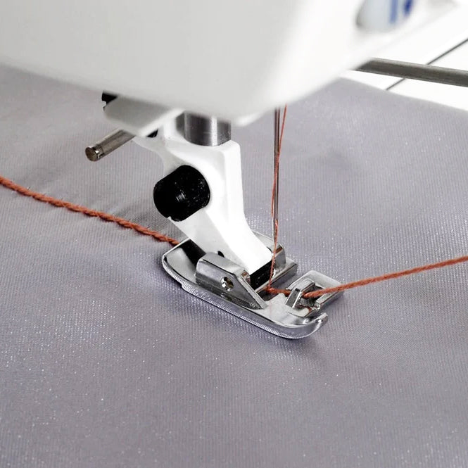 - Position the Trim Place the yarn or trim into the hook/guide at the front of the foot and position it under the foot.