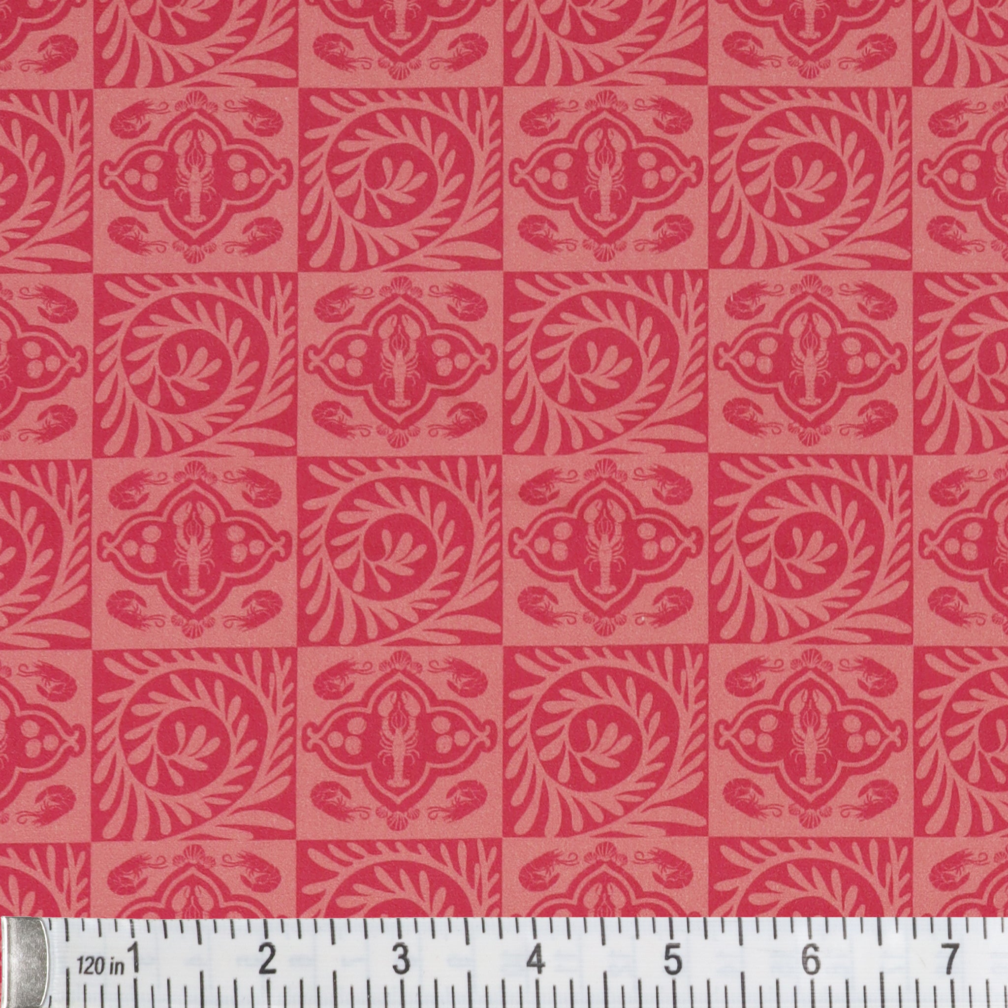 Azulejos Rosados from the Costeira collection celebrates the timeless beauty of Portuguese tilework through a fresh, modern lens. Translating to “Pink Tiles,” this design features a grid of ornate tile-inspired motifs in layered shades of rose, blush, and fuchsia. Laurel fronds and intricate flourishes evoke classic ceramic artistry while adding a playful, romantic twist. Perfect for eye-catching quilts, garments, and coastal-inspired décor, this pattern brings old-world charm to today’s creative projects.