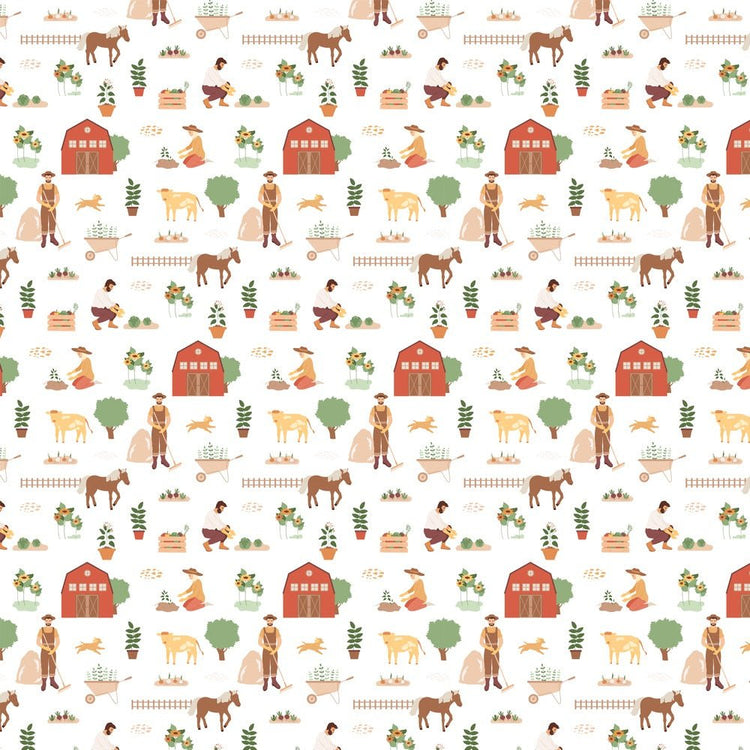 Countryside Farming Fabric - White