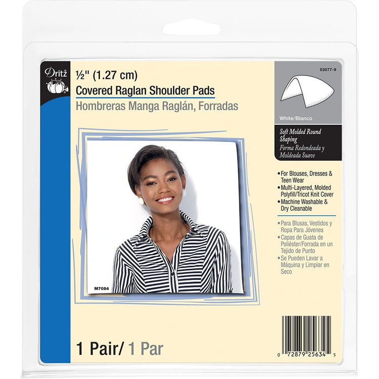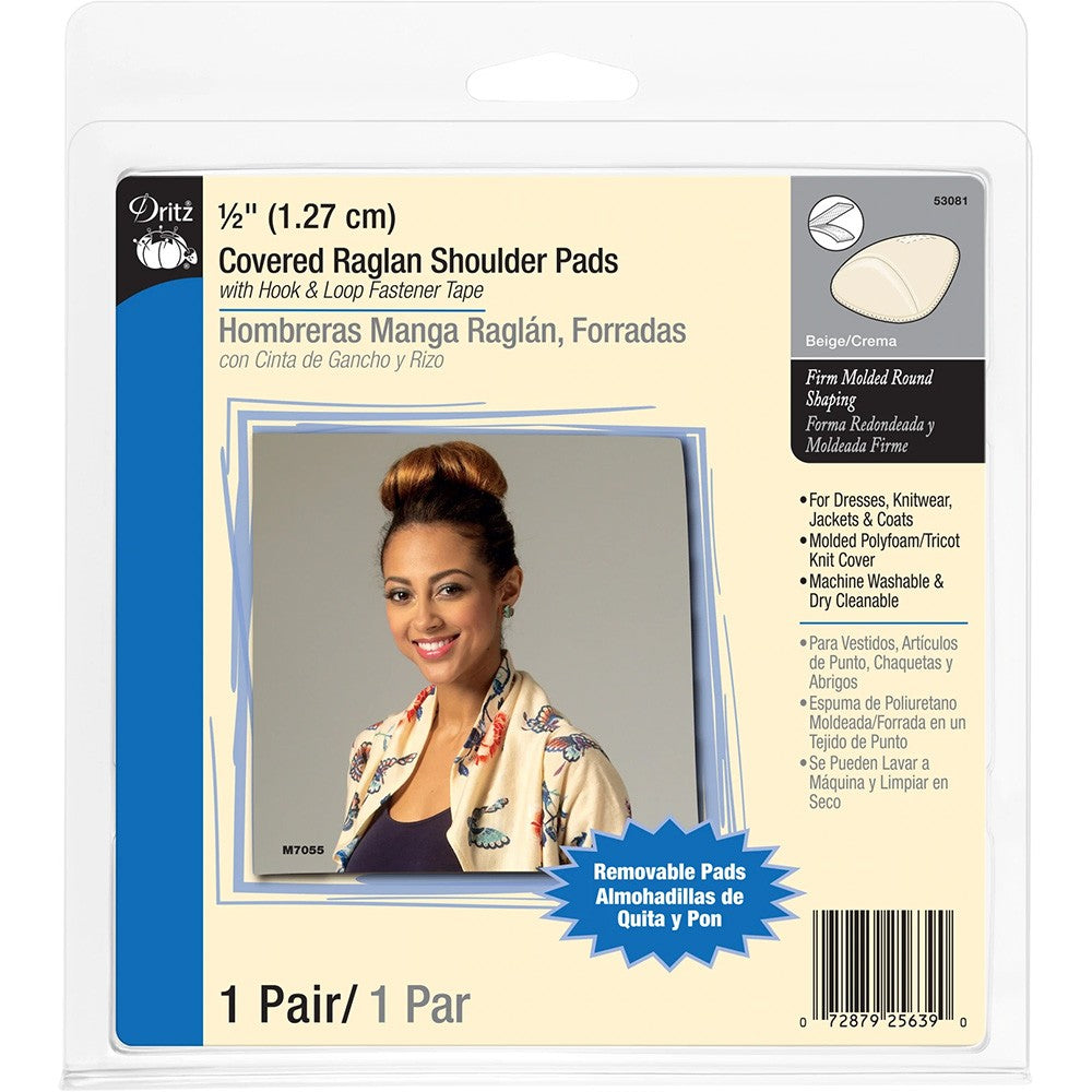Dritz 1/2" Covered Raglan Shoulder Pads provide soft molded round shaping to garment sewing projects as well as store-bought clothing. You can use these should pads in blouses, dresses, or teen wear. They can be sewn or tacked into garments and are made of a soft multi-layered molded polyfill with a tricot knit cover. Machine washable and dry cleanable. Please note the white shoulder pads are semi-circles without velcro straps, and the beige ones are rounded with velcro straps.
