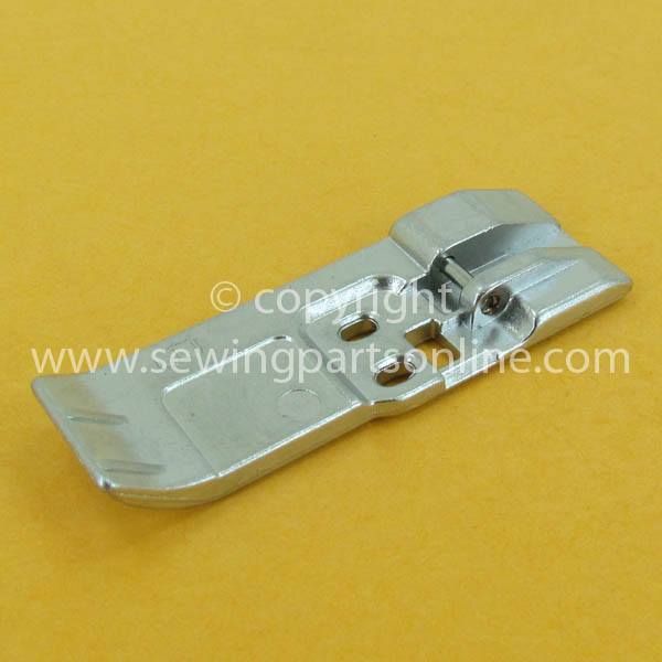 The coverstitch foot produces professional hems on knit garments. Used with a twin or triple needle, the stitch appears as parallel lines on the front and looks sergered on the back.