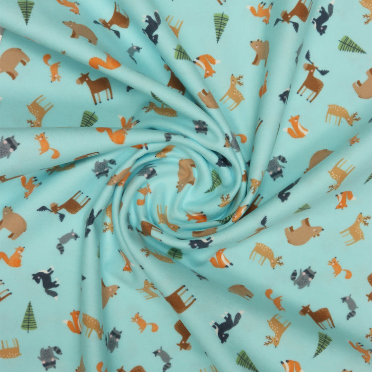 Cozy Forest Comfort Flannel Fabric Collection - Cozy Forest Animals Sky Blue Details
