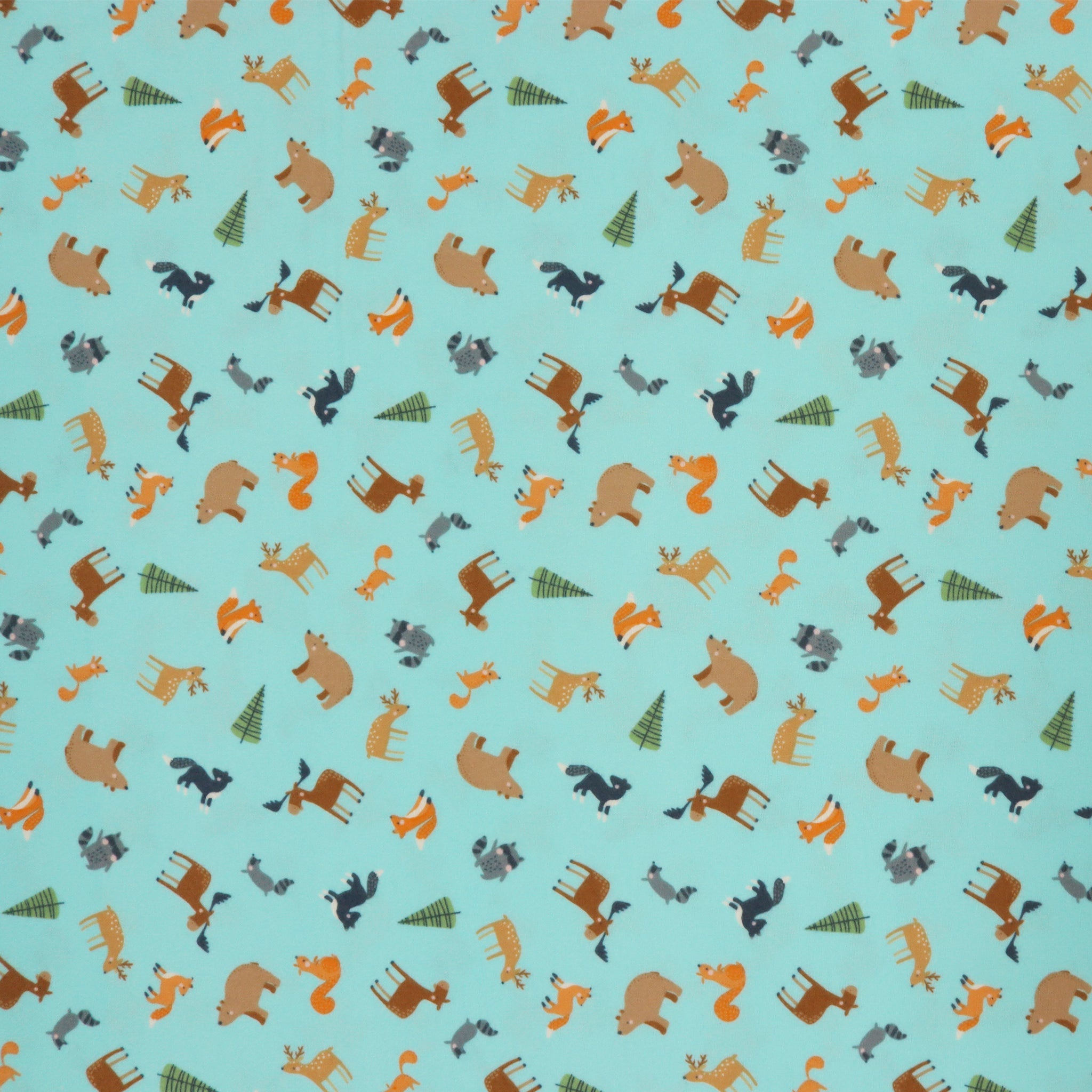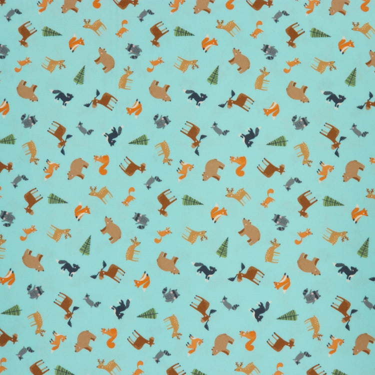 Bursting with woodland charm, the Cozy Forest Animals Sky Blue flannel features an adorable tossed pattern of friendly forest creatures on a soft blue background. Bears, moose, raccoons, deer, foxes, squirrels, and even skunks frolic between evergreens in warm shades of brown, orange, and gray. The cheerful blue base adds a playful and fresh look, perfect for baby quilts, toddler apparel, or themed nursery décor. Its brushed flannel finish offers cuddly softness for snuggly makes like sleep sacks, blankets, or cozy pajama pants. Ideal for gender-neutral gifting or forest-themed sewing adventures, this print adds woodland wonder to any project.