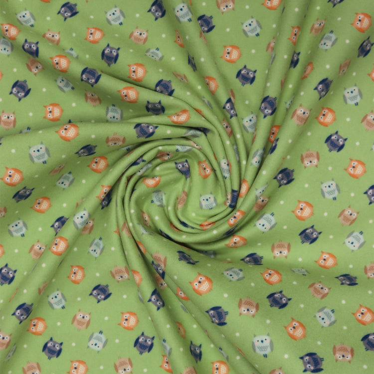 Cozy Forest Comfort Flannel Fabric Collection - Cozy Owls Green
