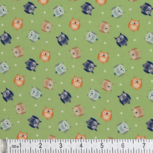 Add a hoot of charm to your next project with the Cozy Owls Green flannel! This playful print features rows of wide-eyed owls in a variety of colors—burnt orange, soft teal, navy, and beige—scattered across a lively green background dotted with tiny white specks. The whimsical design is perfect for children’s quilts, baby accessories, pajama sets, and other cozy creations. The soft flannel texture enhances the snuggle factor, while the gentle, repeating pattern keeps things fun without overwhelming your project. It’s a versatile choice for forest-themed sewing or any project that calls for woodland whimsy.
