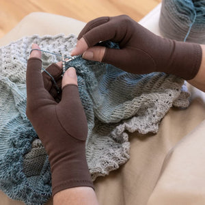 Crafter's Creative Comfort Gloves by Dritz provide support, comfort, and relief for active, achy hands. These gloves are made from a lightweight, seamless, and soft cotton/lycra compression knit that creates a snug fit. These Crafter's Creative Comfort Gloves warm and protect the hands during crafting and quilting projects. Dritz's Crafter's Creative Comfort Gloves has a unique design that improves circulation, reduces swelling, and relieves arthritis pain. Open finger holes allow complete freedom to feel and grip as needed. Washable for easy care. Sold in left and right pair. Colors will vary based on availability.