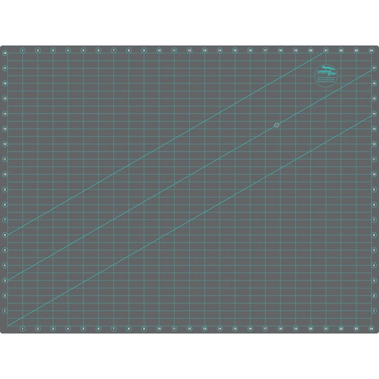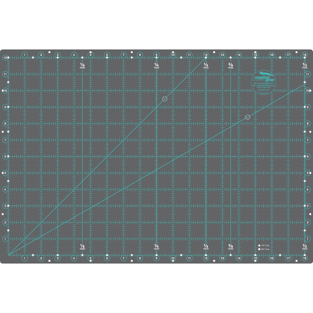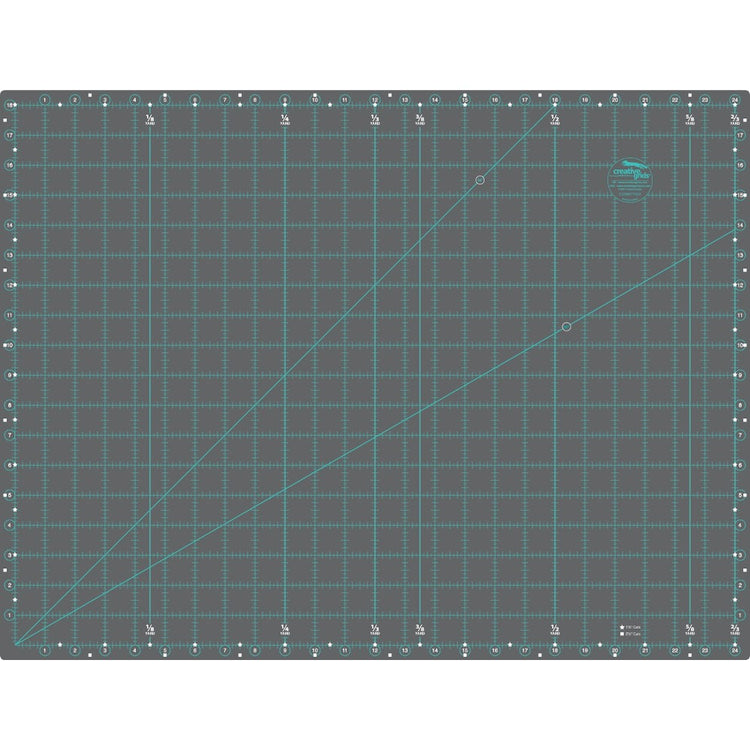 Creative Grids Cutting Mats are designed to optimize your overall fabric cutting experience when used alongside Creative Grids rulers. These double-sided cutting mats are made of a self-healing material and are ideal for use with rotary cutters and craft knives. The gray and teal color scheme ensures optimal visibility when cutting with Creative Grids rulers.