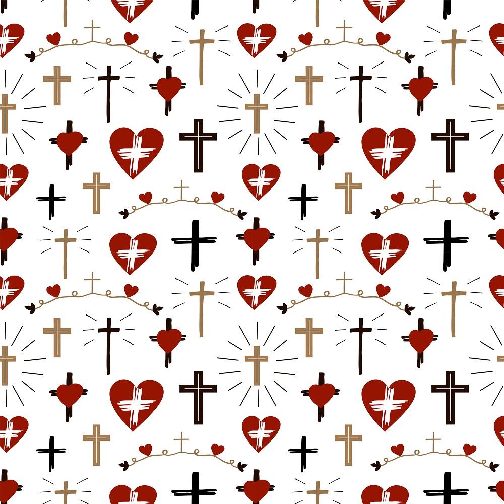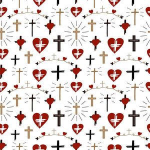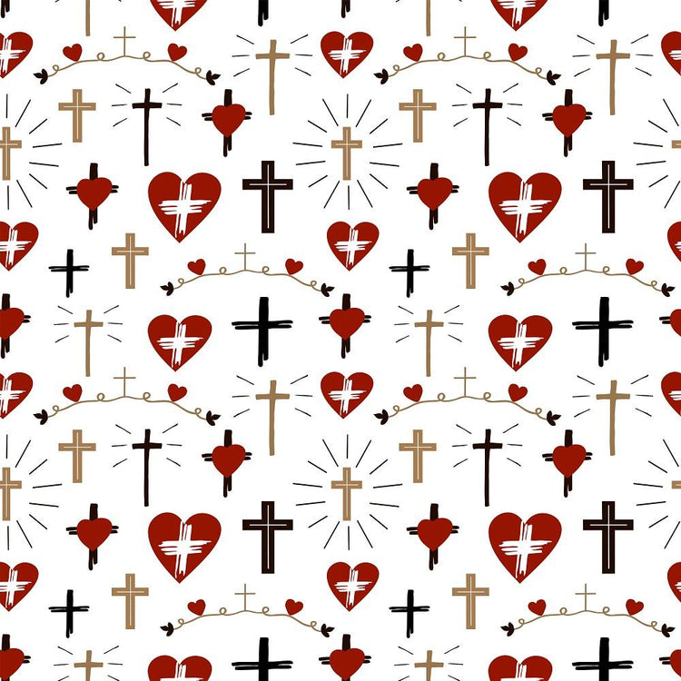 The White Crosses & Hearts Fabric is part of the Saved By Grace Fabric Collection printed by Sew Creative Fabrics. Digitally Printed on 100% cotton.