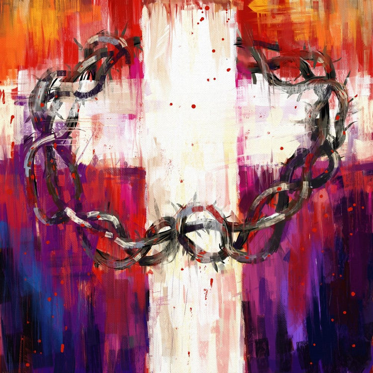 The Multi-Colored Crown Of Thorns Painting Fabric Panel is part of the Faith Fabric Collection printed by Sewing Parts Online. This panel is digitally printed on 100% cotton. The fabric panel is available in 6 different sizes: