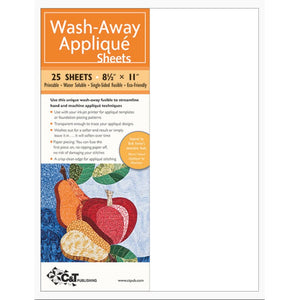 Draw or print appliqué motifs with an ink-jet printer using C&T Publishing Wash-Away Appliqué Sheets. Simply fuse the Wash-Away Appliqué Sheets to your fabric then wash away the paper after stitching everything. Included in the Wash-Away Appliqué Sheets are 25 sheets sized 8-1/2" by 11".