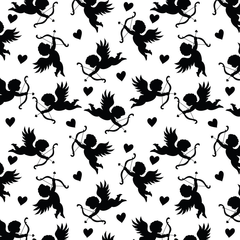 Cupid Silhouette & Hearts Fabric - Variation 1