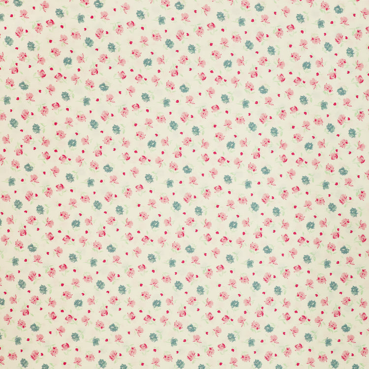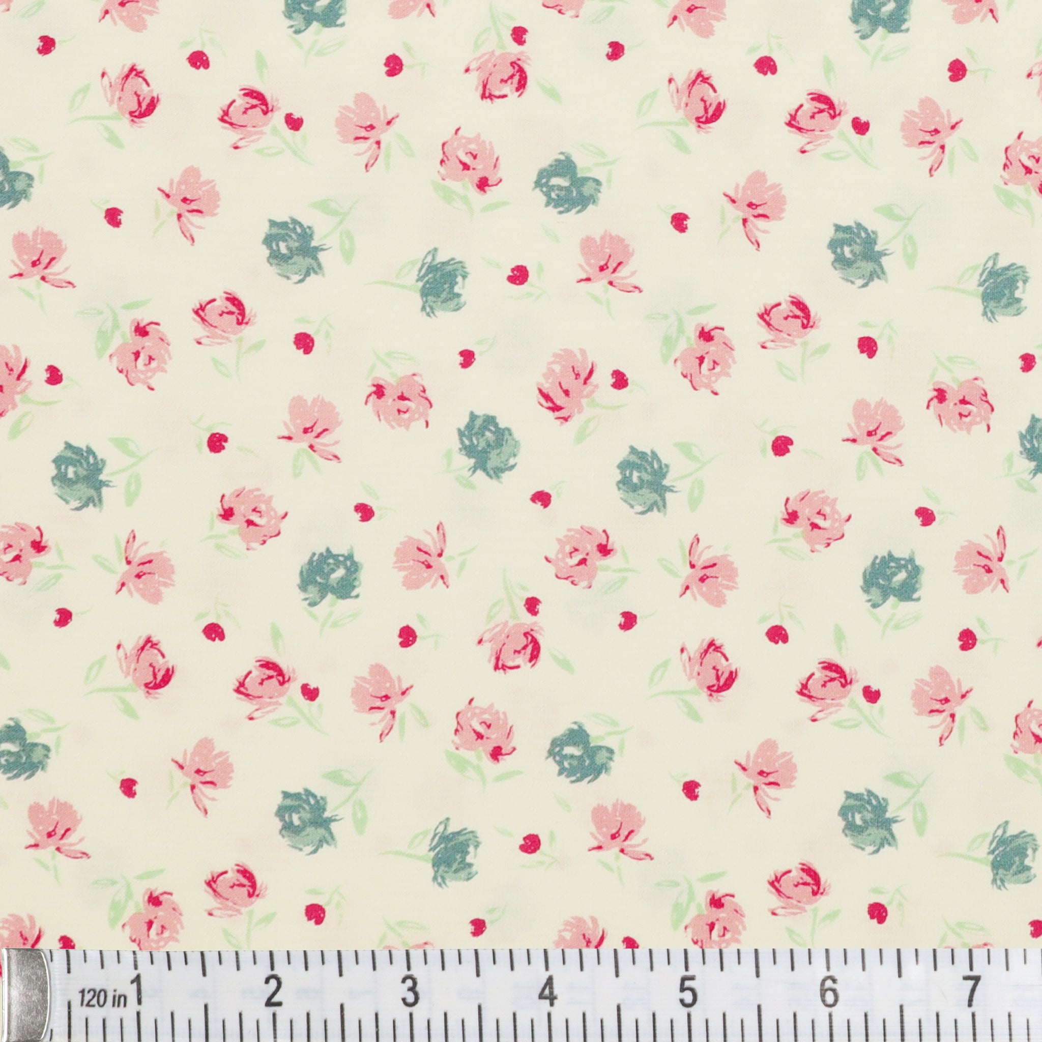 Sweet and whimsical, Gentle Rosebuds Charm is a delightful allover floral print scattered with tiny rosebuds in soft shades of pink and dusty blue. Sprigs of pale green leaves add a fresh, airy touch against the warm cream background, giving the print a breezy, vintage-inspired look. Perfect for delicate quilt accents, nursery projects, or feminine accessories, this fabric brings a lighthearted charm to any creation. Its petite scale makes it exceptionally versatile for patchwork, linings, or coordinating blenders in your shabby chic projects.