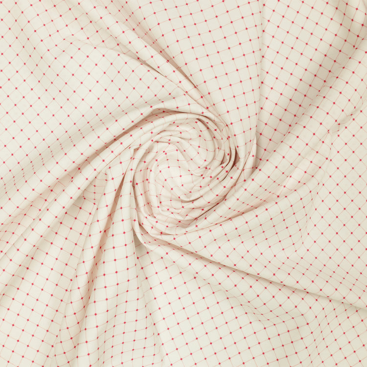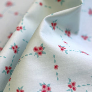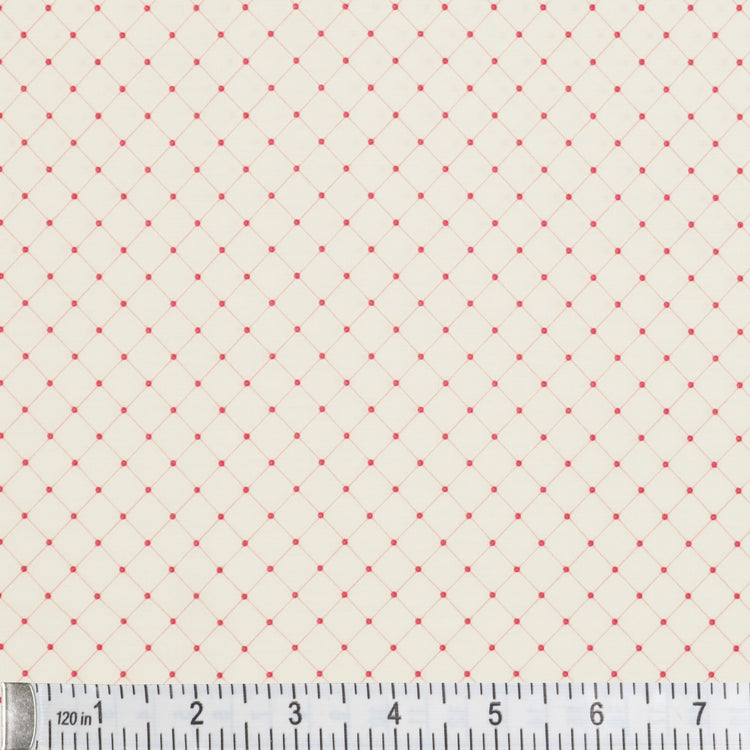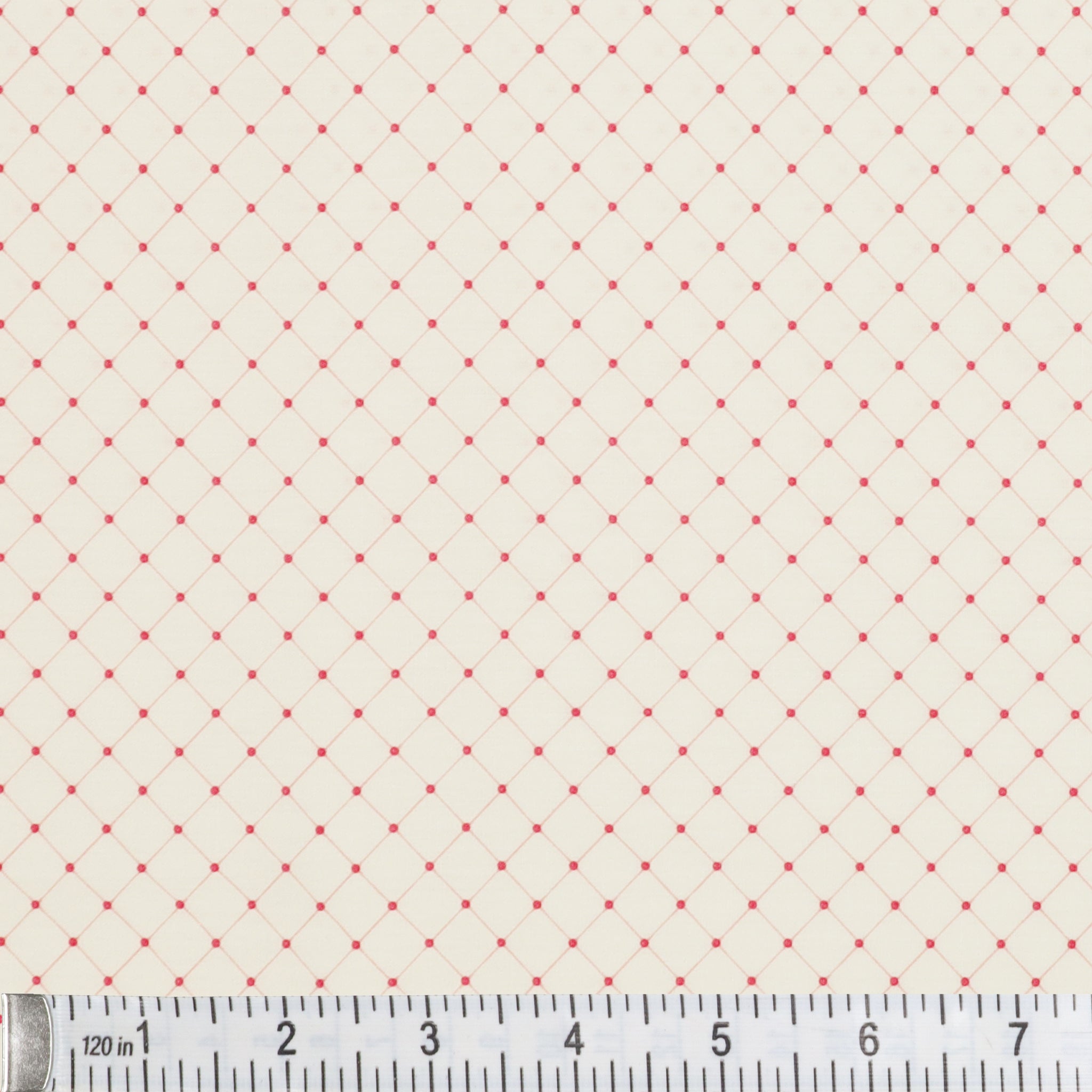 Simple yet full of charm, Lattice Embrace features a delicate pink lattice pattern set against a soft ivory background. The crisscrossing lines form a classic diamond grid, evoking the feel of vintage linens or hand-drawn embroidery guides. This subtle geometric offers the perfect balance between structure and softness, making it a lovely background or blender for floral-heavy quilts, romantic garments, or charming home décor. Clean, crisp, and endlessly versatile, Lattice Embrace adds a quiet sophistication to any shabby chic or cottagecore sewing project.