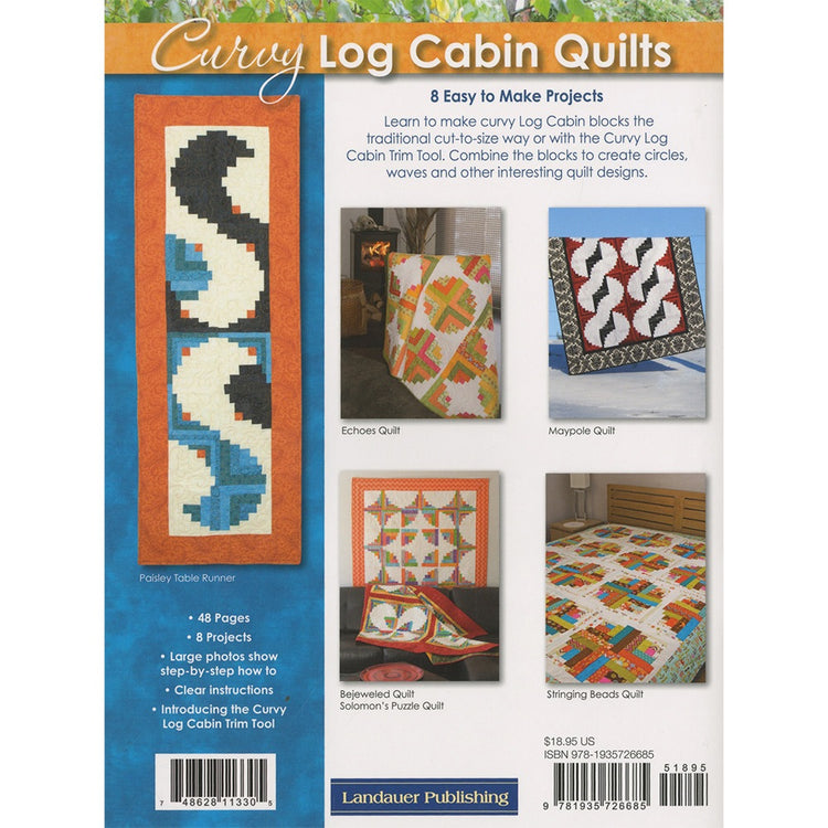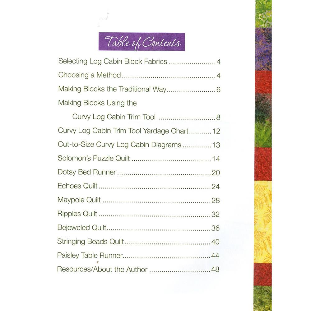 Jean Ann Wright's Curvy Log Cabin Quilts Softcover Book is 50-pages of everything log cabin quilting. This guide book covers selecting fabric, choosing a method, blocks the traditional way, using Creative Grids Curvy Log Cabin Tool, a yardage chart, and best of all, eight individual patterns. Each pattern in the Curvy Log Cabin Quilts Book includes instructions, full-color diagrams, and photos.