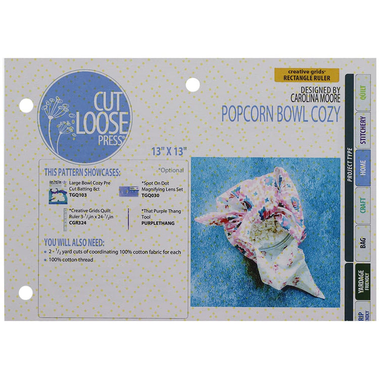 Cut Loose Press, Popcorn Bowl Cozy Pattern Details