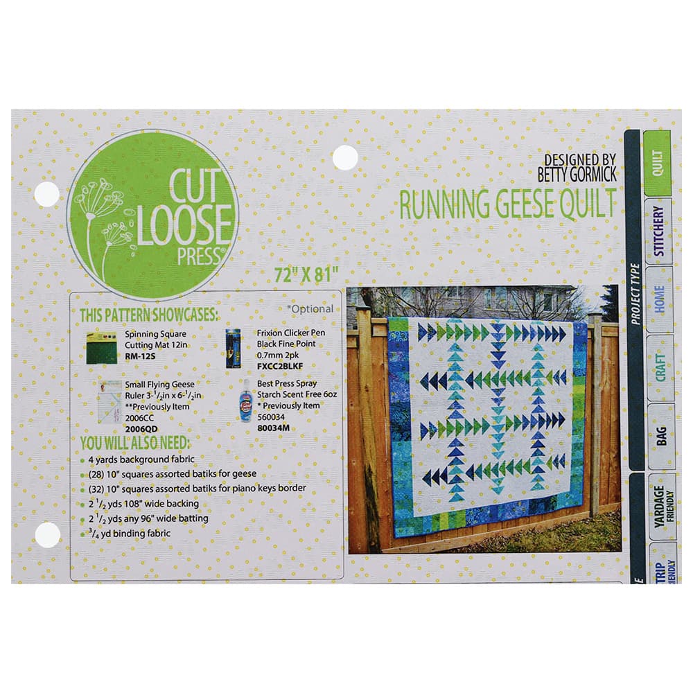 Cut Loose Press, Running Geese Quilt Pattern Details