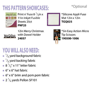 Get a jump start on your holiday designs with Betty Gormick's Santa Stop Here Door Hanger Pattern. This super easy pattern can be completed in just a few hours and makes an excellent gift. The Stana Stop Here Door Hanger finishes to 8-1/2" by 11" and is yardage friendly. The design incorporates fusible applique so it goes together very quickly. You can download the template for everything here, and they can even be printed directly onto Print N Fuse (not included) with no tracing required!
