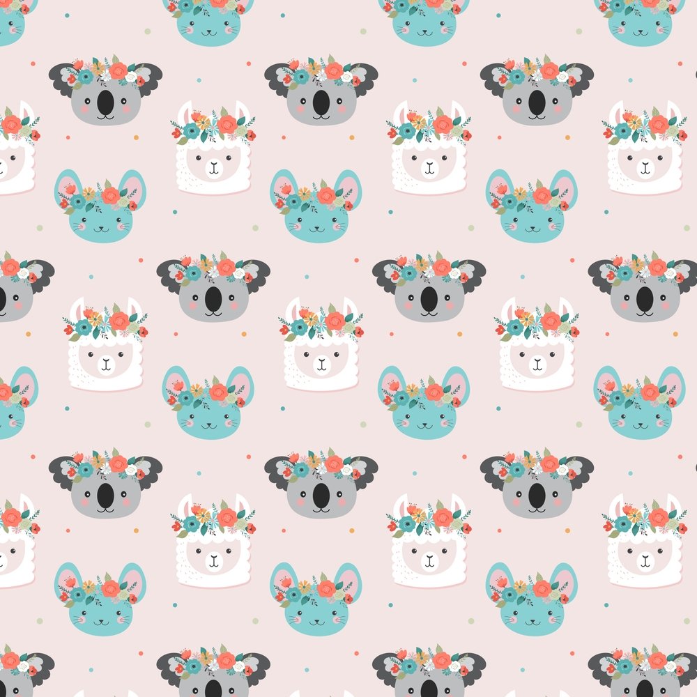 Cute Animals & Florals Fabric - Pink Details