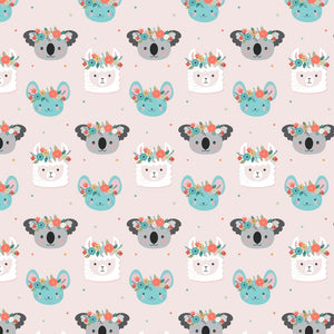 Cute Animals & Florals Fabric - Pink