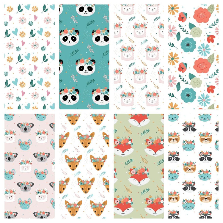 Cute Animals & Florals Fat Eighth Bundle - 8 Pieces Details