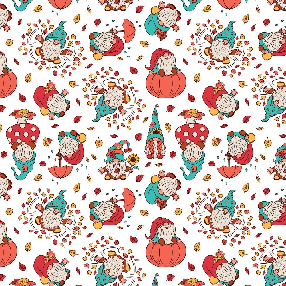 The White Cute Autumn Forest Gnomes Fabric is part of the Cute Fall Gnomes Fabric Collection printed by Sew Creative Fabrics. Digitally Printed on 100% cotton.
