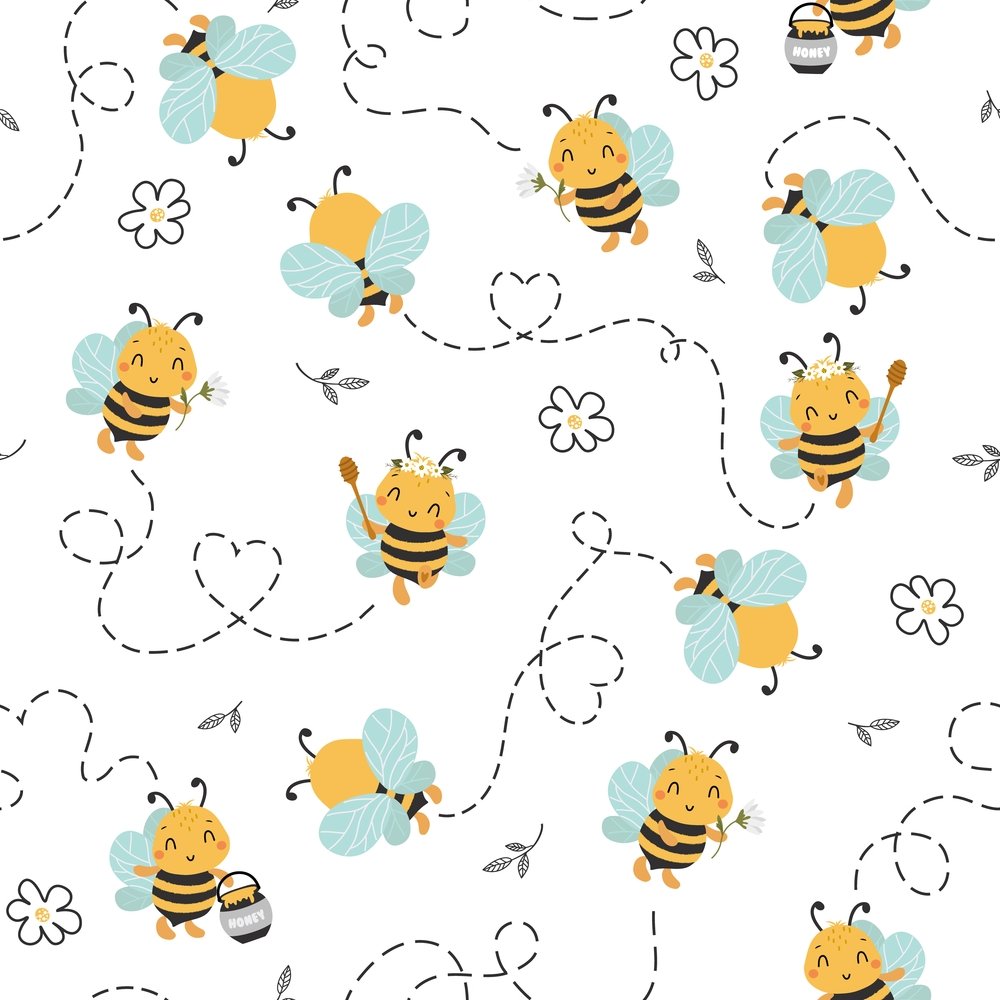 Cute Bees Main Fabric - White Details