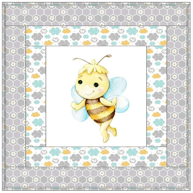 The Cute Dancing Sweet Bee Wall Wall Hanging includes everything that you need to make the quilt - the instructions and a total of 3 1/2 yards of fabric and a 23" panel. It has two borders and is finished with a flange binding. Batting is sold separately. The finished size of this quilt is 42" x 42".