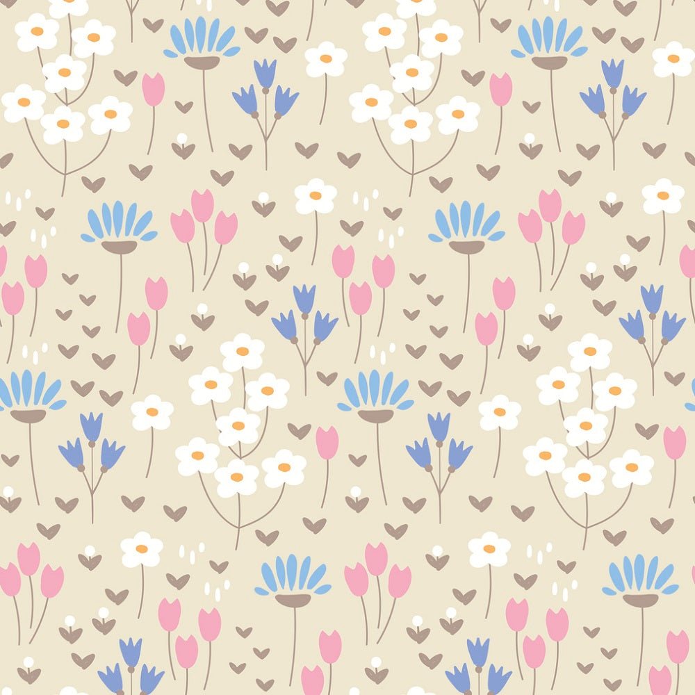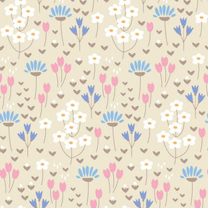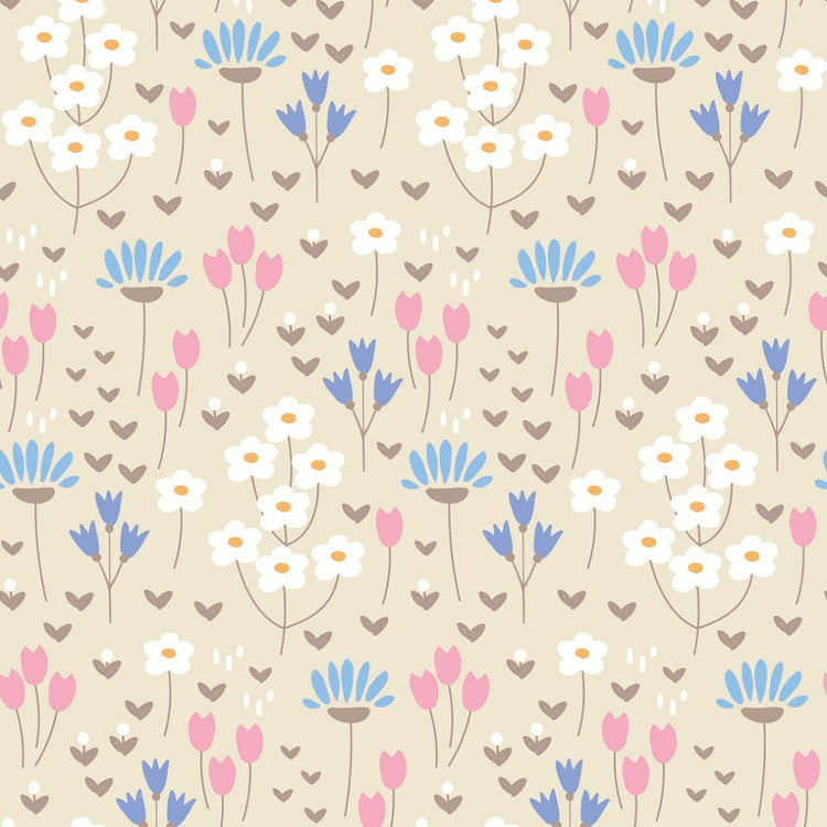 Cute Doodle Flowers Fabric - Tan