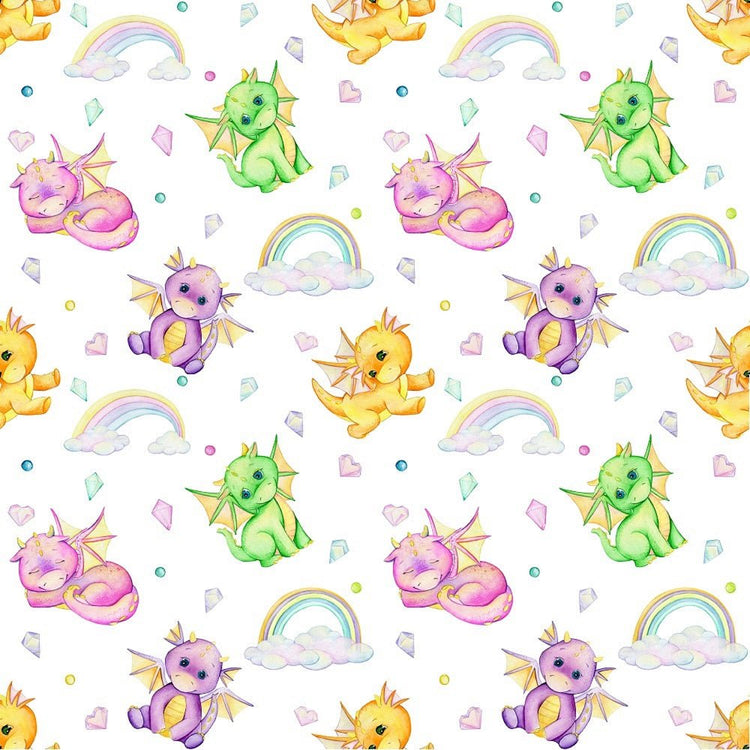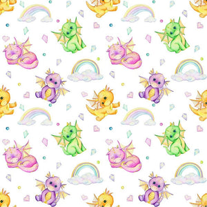 The Cute Dragons, Rainbows, Hearts, & Crystals Fabric is a part of the Cute Dragons Fabric Collection printed by Sew Creative Fabrics. Digitally Printed on 100% cotton and measures 43-44" wide. Sew Creative Fabrics prints are only available through Sewing Parts Online, not sold in stores or anywhere else online. * Proudly Manufactured in Dickson, Tennessee USA! *