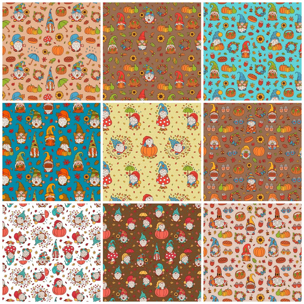 Cute Fall Gnomes Fat Quarter Bundle - 9 Pieces Details