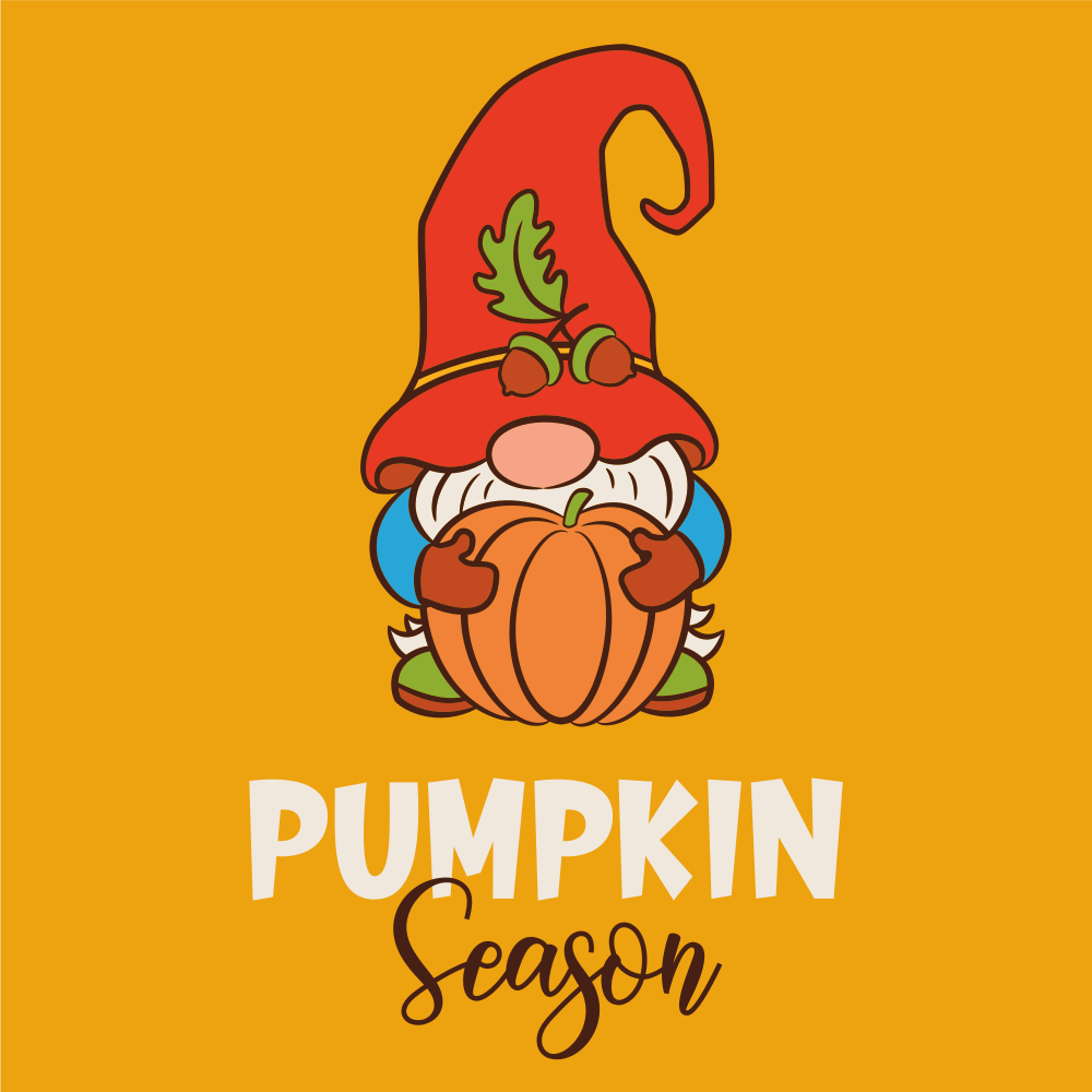 Cute Gnome Pumpkin Season Fabric Panel - Orange Details